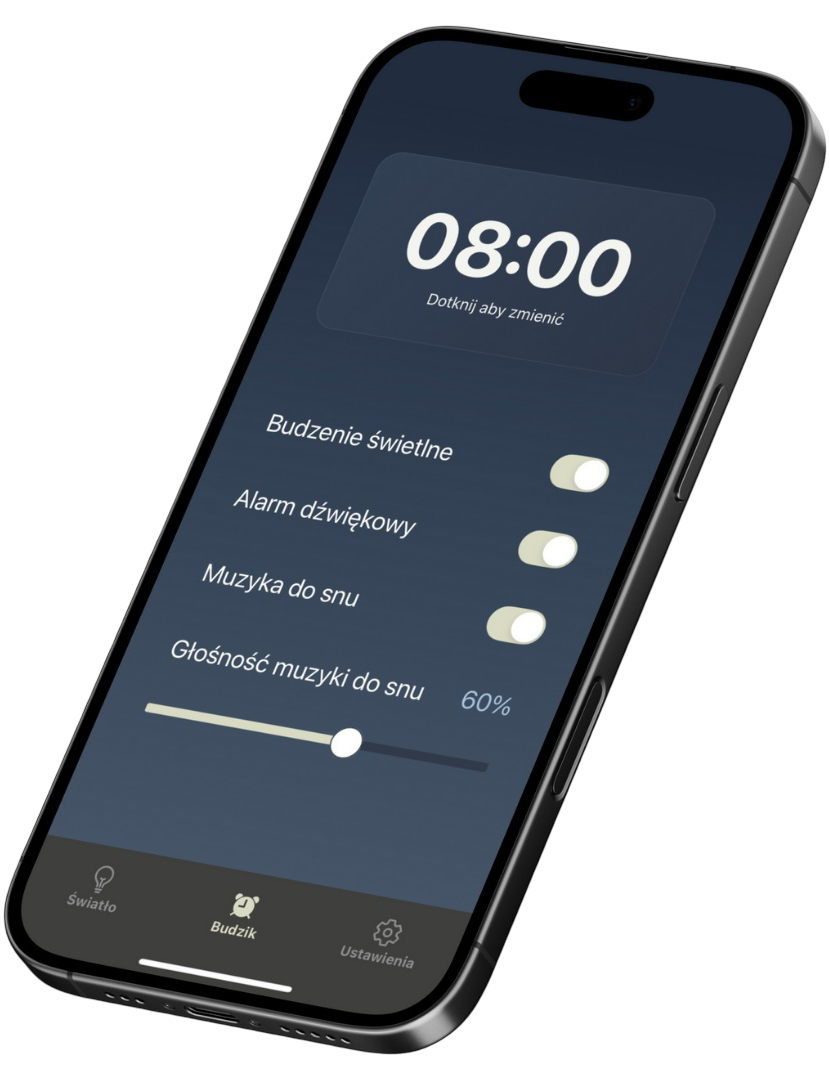 Steruj lampą za pomocą autorskiej aplikacji mobilnej Sleep Breeze. Połącz się z lampą jednym kliknięciem i odkryj, jak proste może być zarządzanie światłem dopasowanym do Twojego rytmu dnia.
